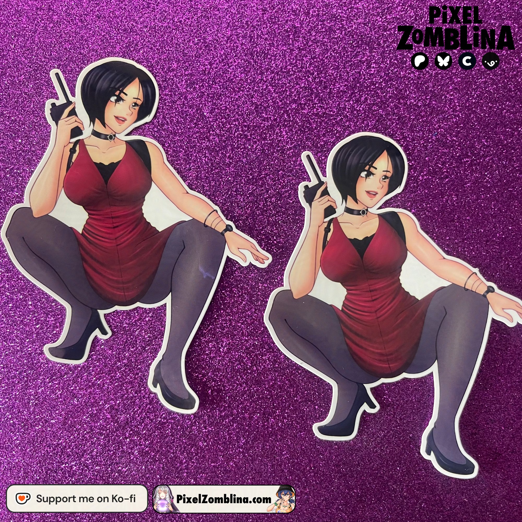 A glossy sticker of Ada Wong from Resident Evil 2 Remake!