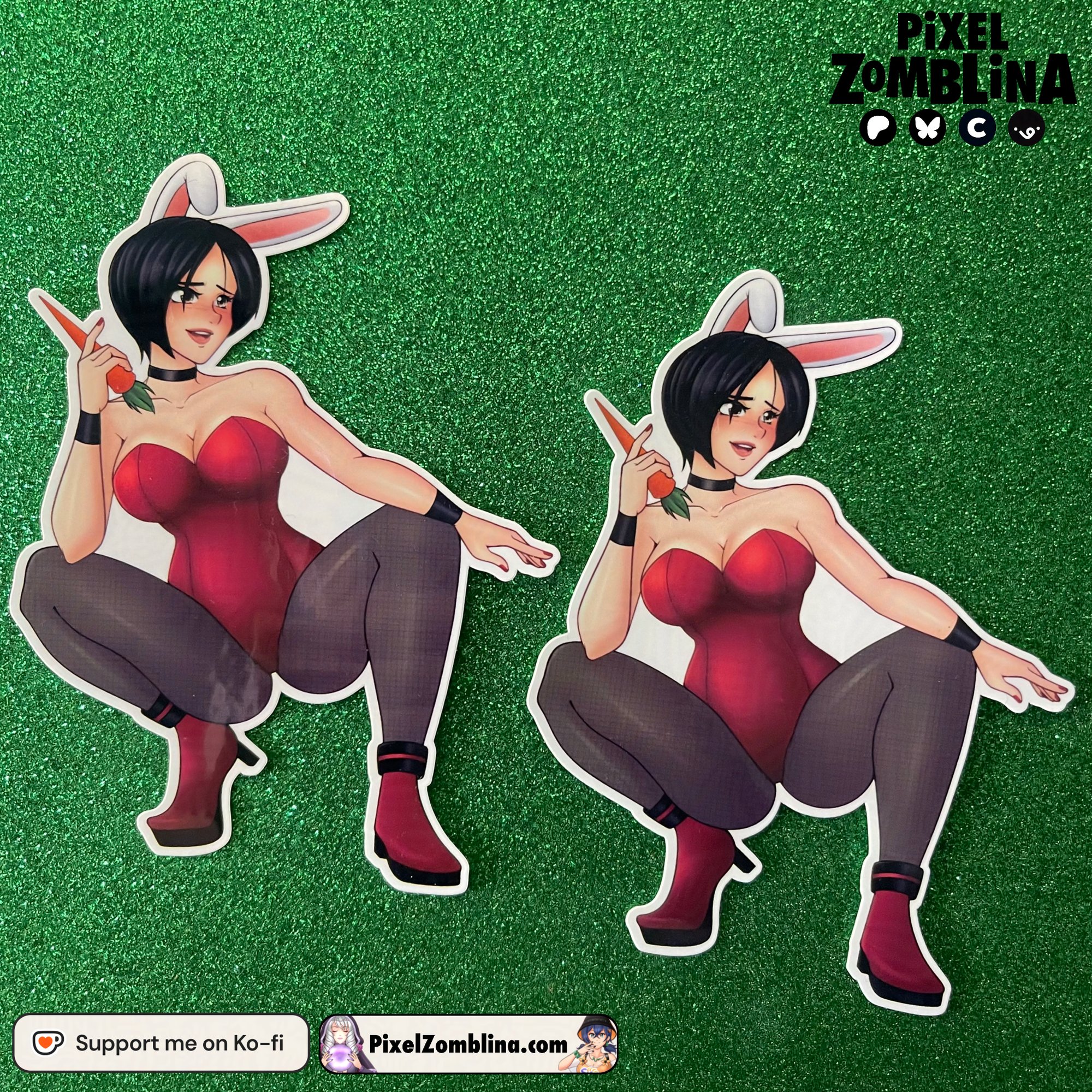 A glossy sticker of Ada Wong from Resident Evil wearing her own bunny outfit!