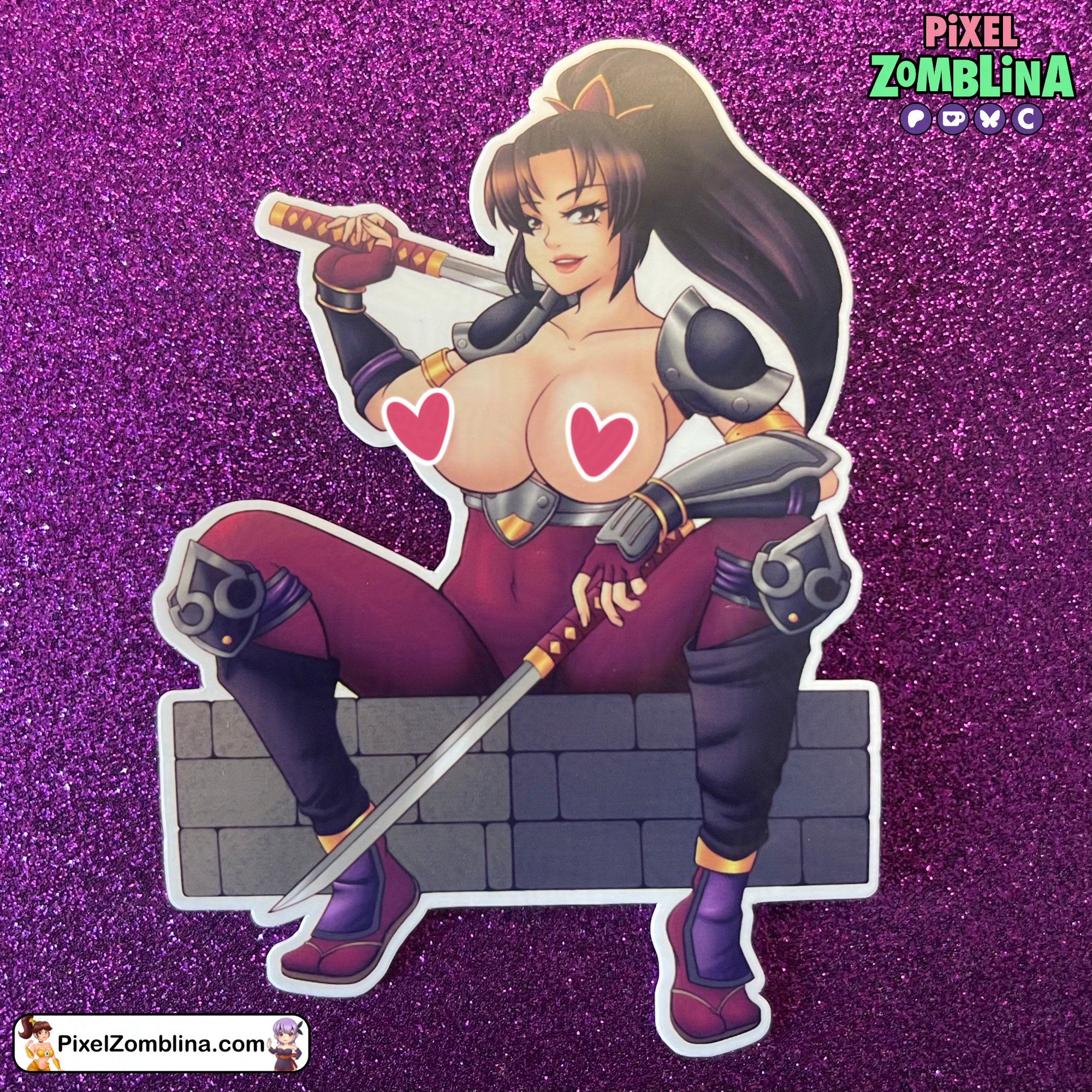 Topless Taki is 4 inches tall and has a laminate to protect the sticker.