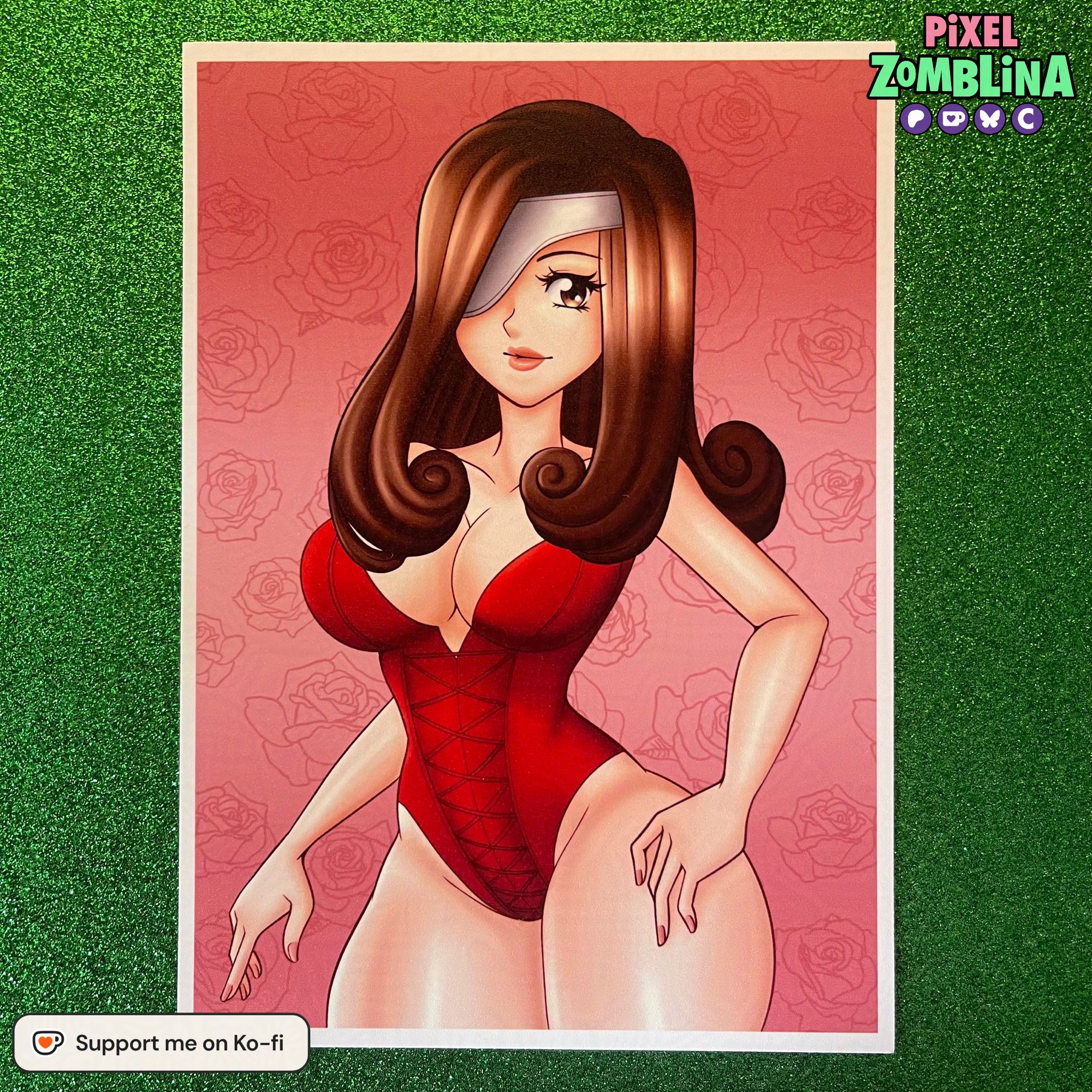 A semi-glossy print of Beatrix from Final Fantasy IX wearing a red swimsuit! Print is 5x7 inches and has an option to include a matching sticker.