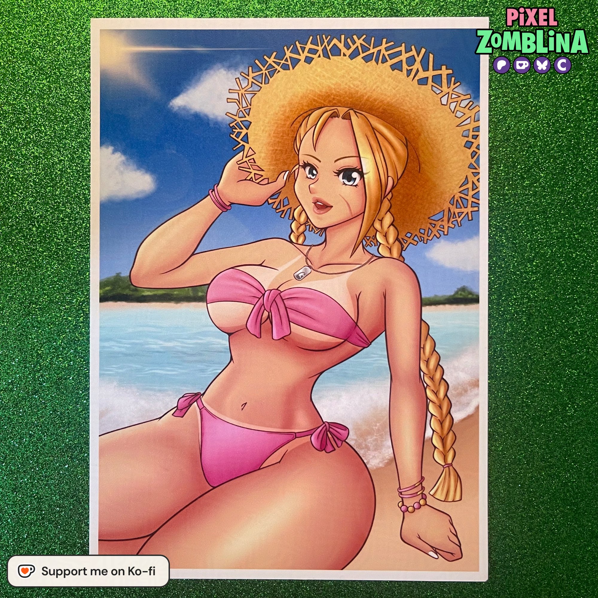 A semi-glossy print of Cammy wearing her Summer outfit from Street Fighter 6! Print is 5x7 inches and has an option to include a sticker.