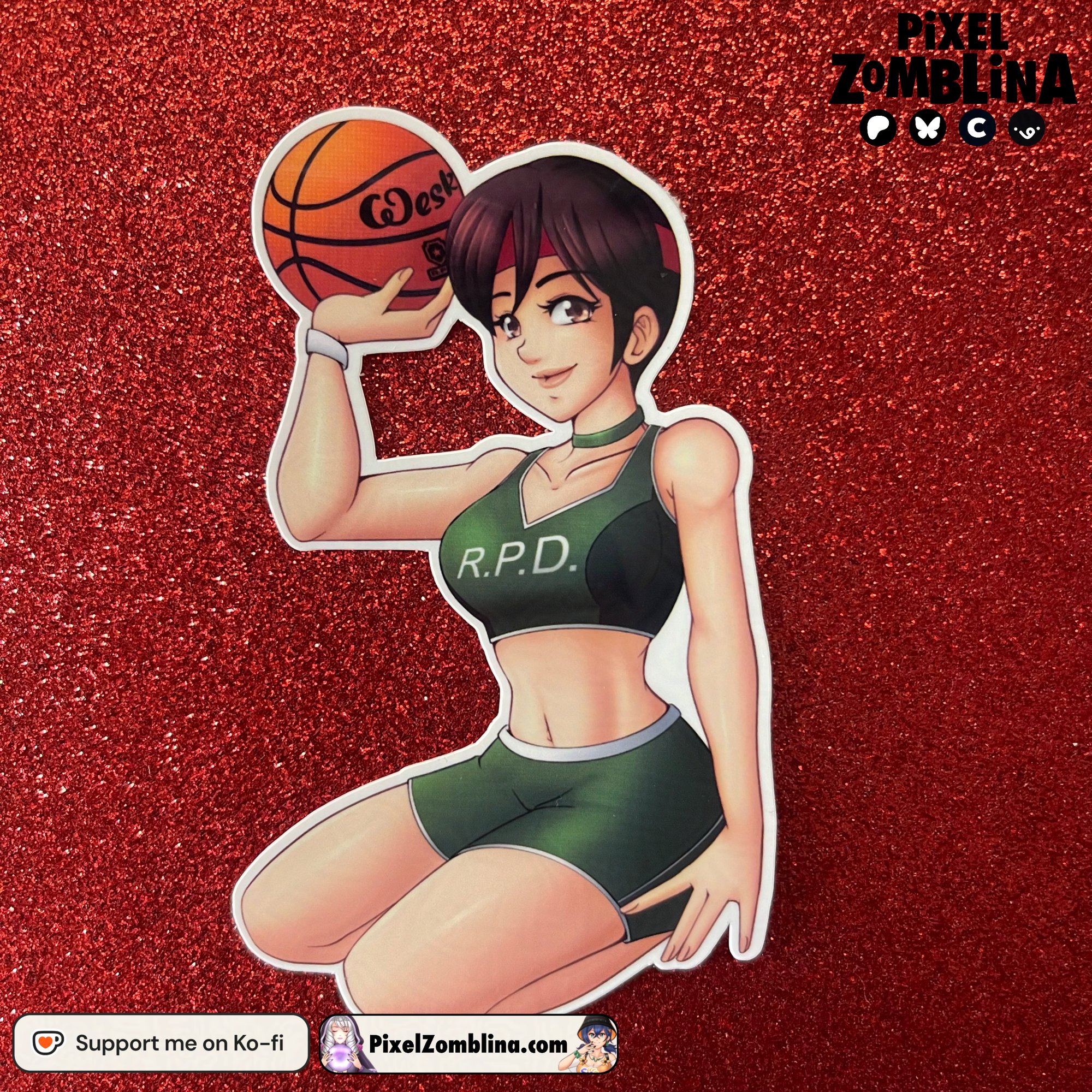 A glossy sticker of Wesker's rising rookie: Rebecca Chambers from Resident Evil!
