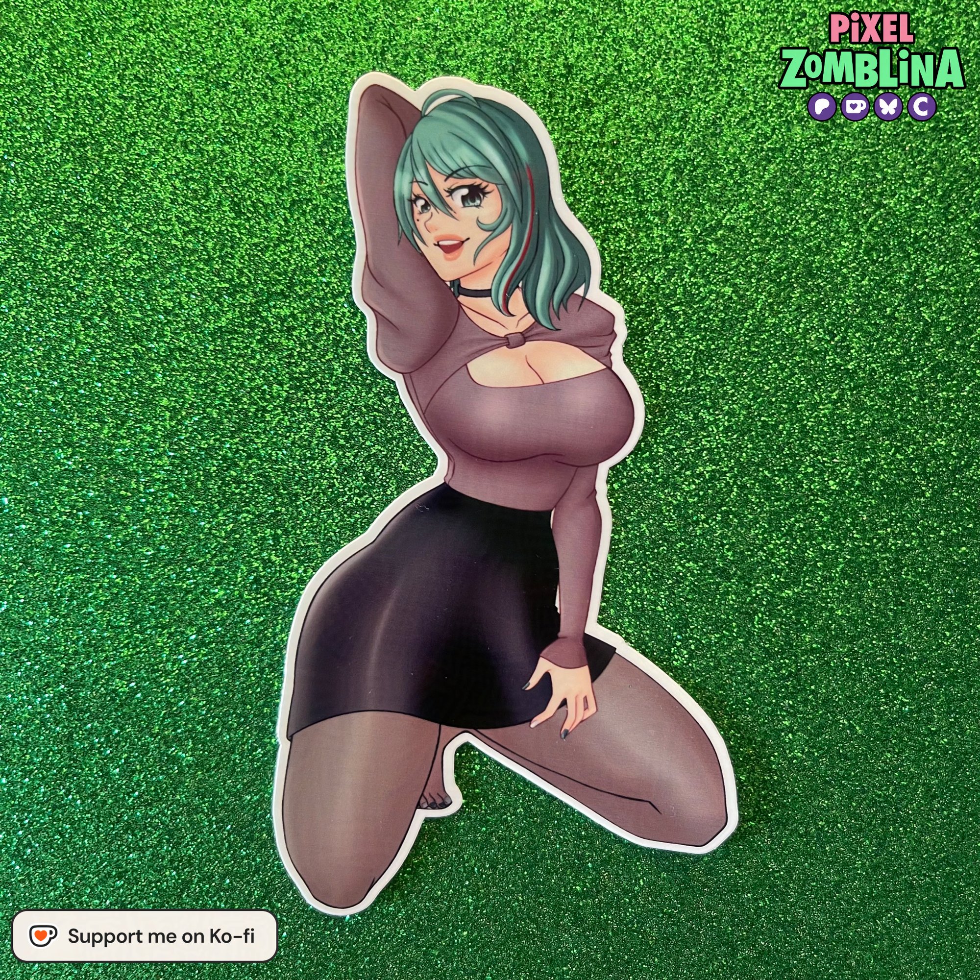 She is 4.5 inches tall and has a laminate to protect the sticker! Holographic version also available!