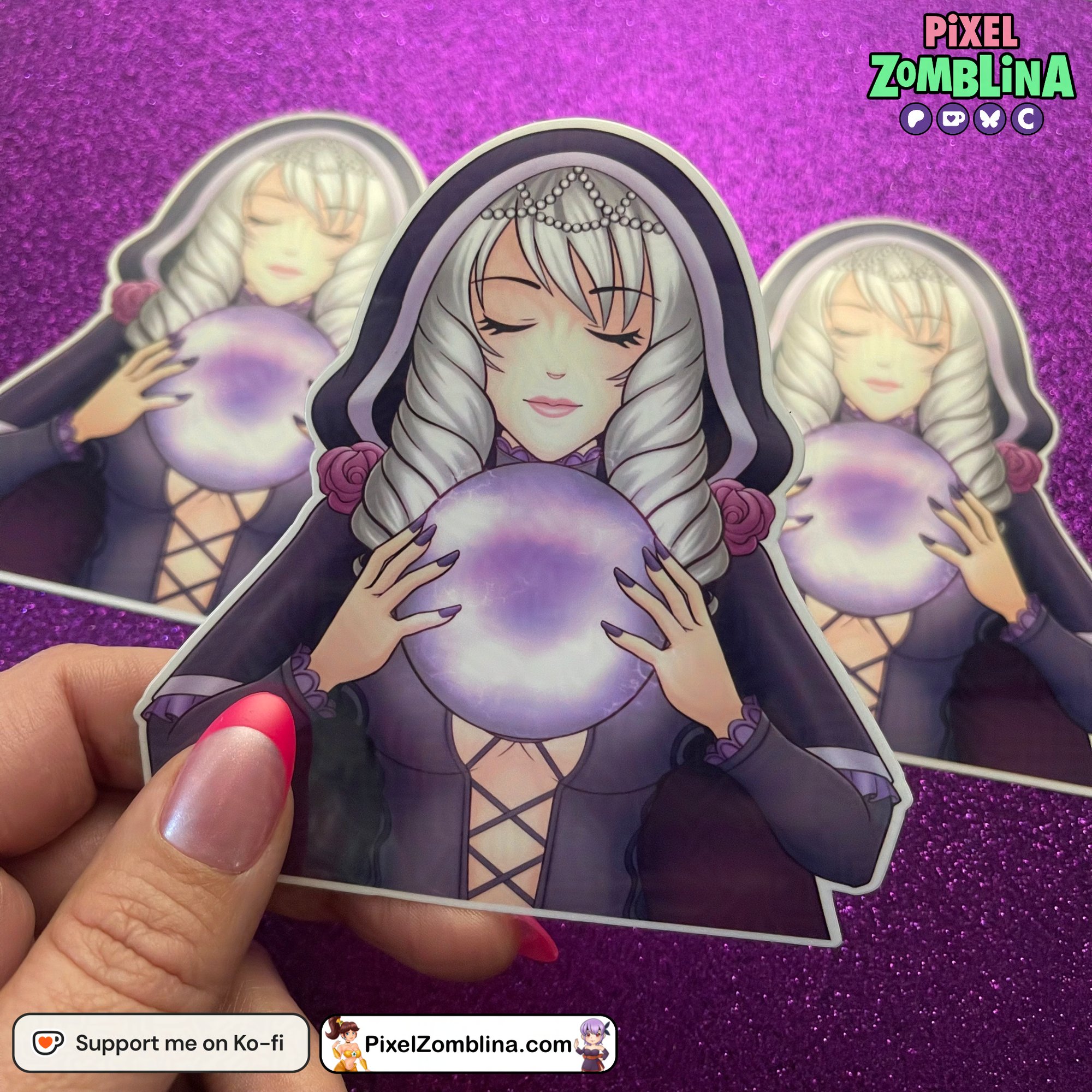 A glossy sticker of Viola from Soul Calibur 5!! She is 4 inches tall and has a laminate to protect the sticker.