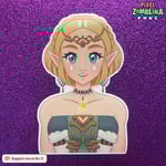 A glossy sticker of the Zelda in her dress from Tears of the Kingdom! She is 4 inches tall. Has a laminate to protect the sticker as well.